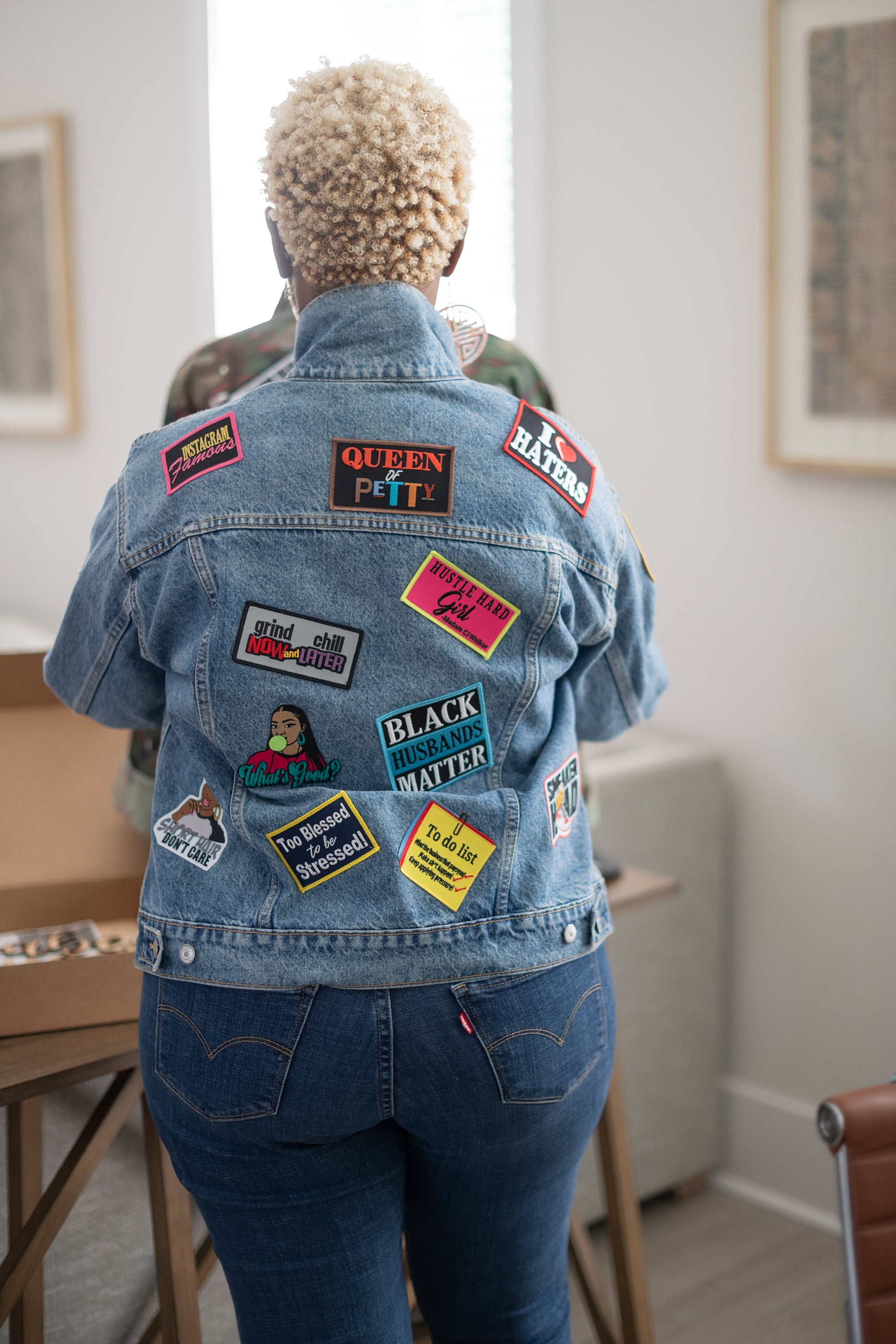 Contemple nuestra chaqueta de camuflaje vintage Tuskegee, reciclada y adornada con parches de lentejuelas y salpicaduras de pintura espectaculares. Nuestro diseño hace un guiño al arte africano para darle una versión moderna a un estilo atemporal. Haga una declaración de moda audaz con esta elegante chaqueta.