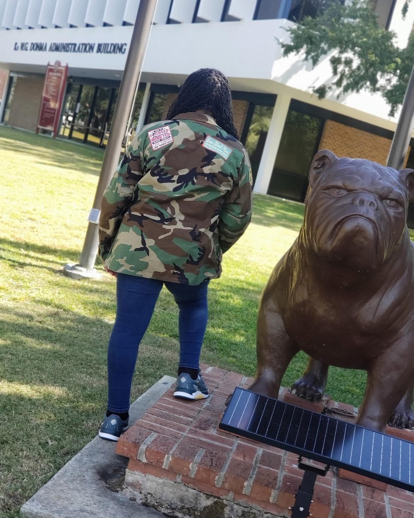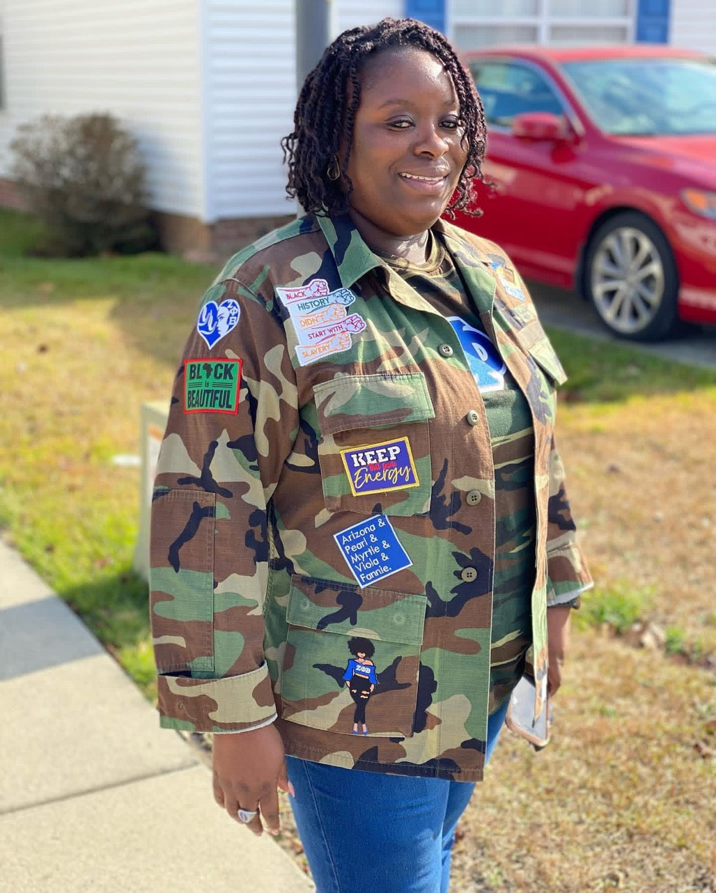 **Kindly be aware that the sorority patches on this jacket are the customer's own. Our services include adding customer-provided embellishments, but we do not sell sorority or fraternity items.