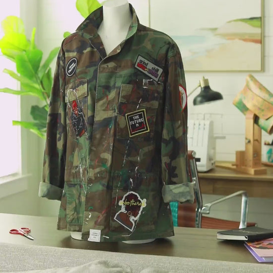 Explore our range of custom camo jackets, where durable fabrics meet vintage aesthetics and a playful touch. Discover camo jackets adorned with novelty patches, adding personality and a story to each garment. Find unique buttons and pins that further customize these military-inspired pieces, alongside detailed embroidery that adds an extra layer of artistry. These jackets are not just outerwear, but wearable canvases of history and individual style.